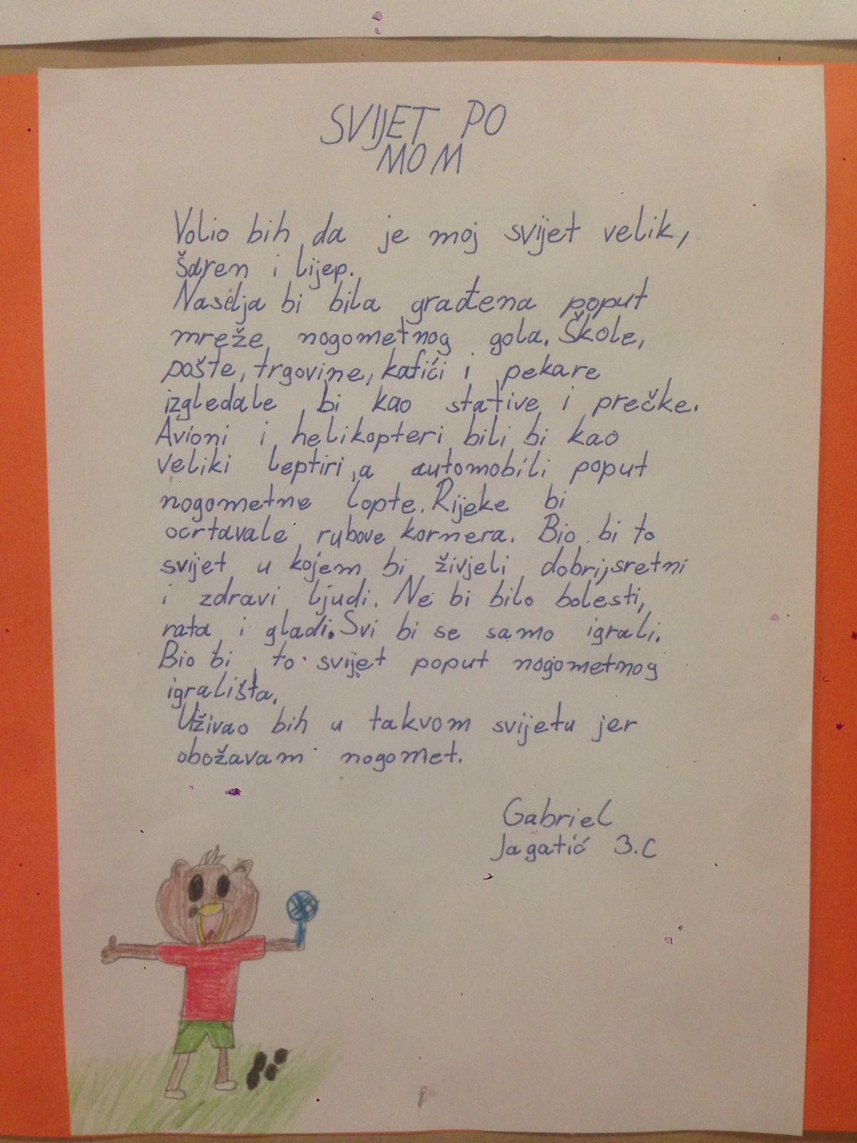 Natjecanje je proteklo u veselom tonu s puno zadovoljstva i dječjih osmijeha, a dobroj atmosferi svakako je pridonio i voditelj Roberto Anić. U uvodnom dijelu programa pjesmom i plesom predstavili su se učenici nižih i viših razreda te svojim izvedbama oduševili sve prisutne. Za najbolji literarni rad na temu „Svijet po mom“ odabran je sastavak Gabriela Jagatića iz 3.C.