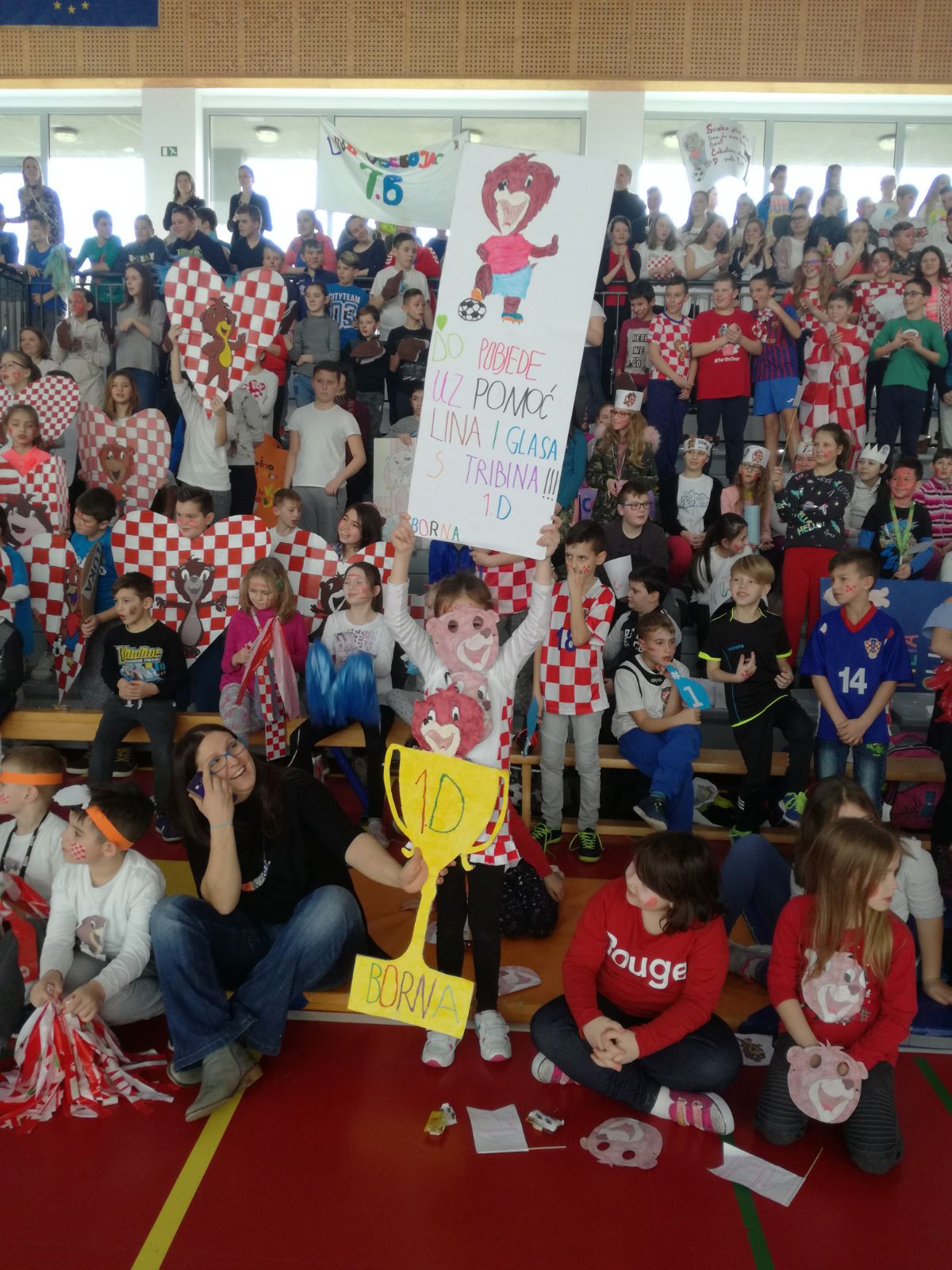 Dvadeset i četiri učenika od petog do osmog razreda natjecali su se u individualnim i ekipnim sportovima: skoku u dalj, sprintu, nogometu, rukometu, košarci, skakanju u vrećama, trčanju, potezanju konopca i štafeti. Najbolji su bili Leonarda Brkić iz 7.A i Božidar Nikolić iz 7.B. Na kraju natjecanja svoje snage ekipno su odmjerili i učenici od 1. do 4. razreda i to u potezanju konopca, skakanju u vrećama i štafeti. Učenici 4.A zaslužno su osvojili prvo mjesto za najbolje izrađeni transparent, a učenice Jana, Lara i Karla iz 5.D pokazale su se kao najvatrenije i najglasnije navijačice. Pobjednici su dobili pehare, a svi ostali natjecatelji prigodan Podravkin poklon.