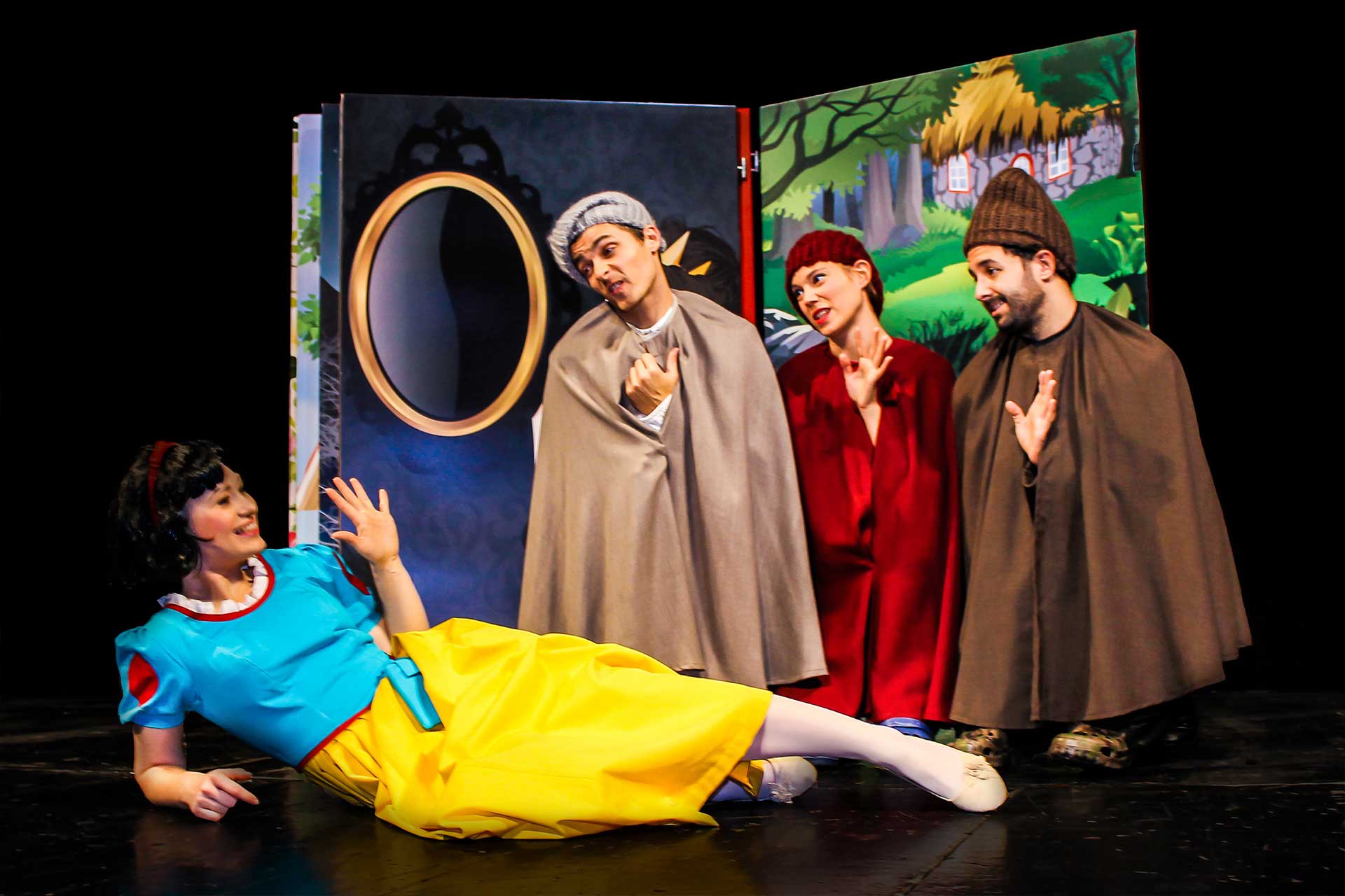 Tekst i režija: Ljubomir Kerekeš, a uloge igraju: Snjeguljica – Mirela Videk, Crvenkapica, Kraljica, Patuljak 2 – Iskra Jirsak, Kraljević 1 i 2, Zrcalo, Patuljak 1 – Zoran Pribičević i Lovac, Vuk, Patuljak 3 – Jan Kerekeš