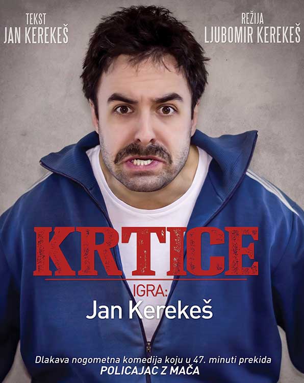 A navečer, u 19,00 sati, također pod šatorom u Rugvici počinje predstava za odrasle - "KRTICE". Nagrađivana komedija Kerekesh Teatra u kojoj se na nogometnom terenu u NK Žbunju s krticama bori domar Stjepan Radički. Osim što isproba sve moguće metode koje su ikad ikome pale na pamet kako bi otjerao krtice, na teren mu dolaze pomoći i odmoći razni prijatelji i neprijatelji, među kojima su i Žarko Potočnjak, bivši ministar Linić, Siniša Popović, Massimo, Policajac z Mača i mnogi drugi. Više od 15 likova u predstavi, na maksimalno duhoviti način, tumači mladi i nagrađivani glumac Jan Kerekeš koji je za “Krtice” bio i nominiran za Nagradu hrvatskog glumišta 2015., a režiju potpisuje Ljubomir Kerekeš.