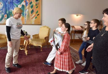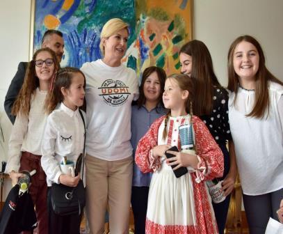 Uputili smo dopis Uredu predsjednice kako bi voljeli upoznati predsjednicu pa i vidjeti prostor u kojem naša predsjednica obavlja važne državničke poslove. Vrlo brzo smo dobili odgovor pa su se naši učenici i učitelji imali prilike prošetati Pantovčakom te se družiti sa našom predsjednicom Kolindom Grabar Kitarović. Tema Dana otvorenih vrata bila je posvećena udomljavanju napuštenih životinja tako su uz druženje spoznali i važnost humanog ponašanja ne samo prema ljudima već i životinjama. M.Kirin